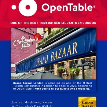 With 42 covers inside and 25 covers outside, plus a dedicated bar and authentic Turkish kitchen, Grand Bazaar is a culinary gem nestled within the famous James Street and St Christopher’s Place, just a stone’s throw from Selfridges London.